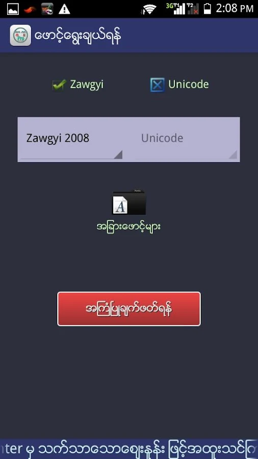Internet ရွိရွံျဖင့္ လက္ရွိျမန္မာေဖာင့္အလွမ်ားကုိ အလြယ္တကူ Download ဆြဲျပီးသြင္းေပးသည့္ Function ထည့္သြင္းေပးထားပါသည္။